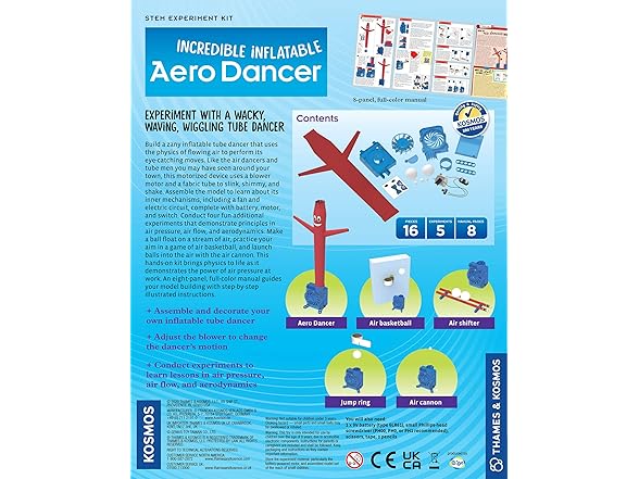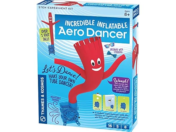 Thames & Kosmos Incredible Inflatable Aero Dancer STEM Experiment Kit | Make Your Own 1-Foot Tall Tube Dancer | Explore Air Pressure, Aerodynamics, Gears & Circuits | Hands-on Activities & Challenges