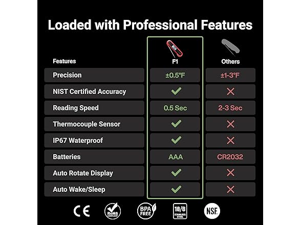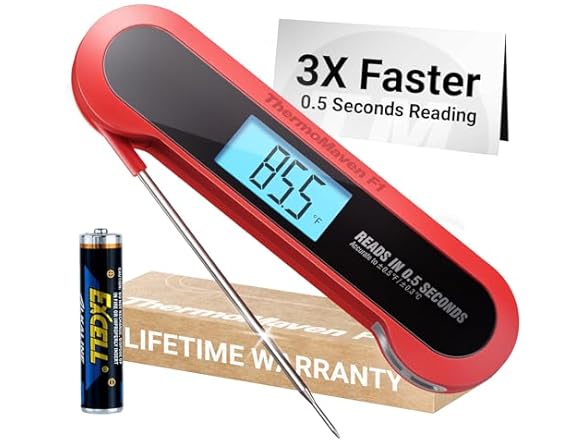 Professional 3X Faster 0.5sec Instant Read Meat Thermometer Digital, High Accuracy ±0.5°F, IP67 Waterproof, Auto Wake/Sleep & Rotate Display, NSF & NIST Certified, Backlight Fry Oil Candy Thermometer