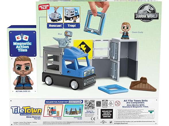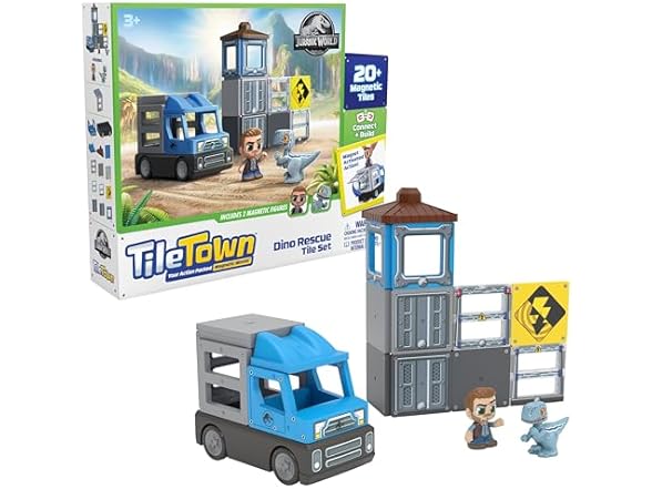 - The Tile Town Jurassic World Rescue Construction Set includes a magnetic Figure and a Dinosaur Figure to bring your play to life as they interact with the Action Tiles!