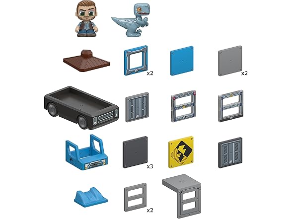 - The Tile Town Jurassic World Rescue Construction Set has a variety of 22 Magnetic pieces and accessories to give your child an enriched & elevated building experience.