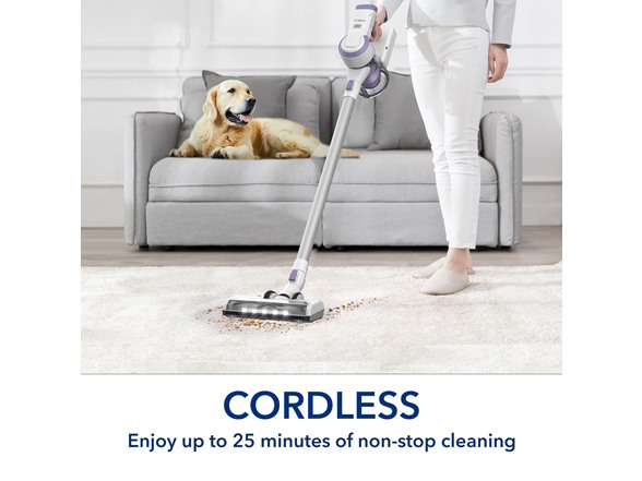 • Extended Runtime: Provides 25 minutes of cordless operation, suitable for cleaning an entire home or quickly addressing messes.