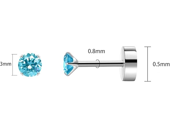 Titanium Earrings for Women Stud Earrings 3mm Cubic Zirconia Dainty Screw Flat Back Hypoallergenic Earrings for Women for Multiple Cartilage Helix Conch Tragus Piercing Jewelry for Sensitive Ears