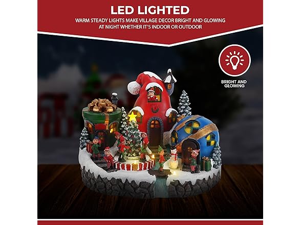 - VERSATILE – Use this LED Lighted Musical Christmas Village Santa's Helpers, along with other Christmas Village Sets, as a centerpiece for your holiday displays or add it to your Snow Village Collection. It's a versatile Collectible Figurine that will add magic to any room.