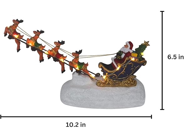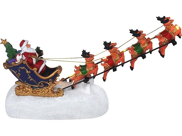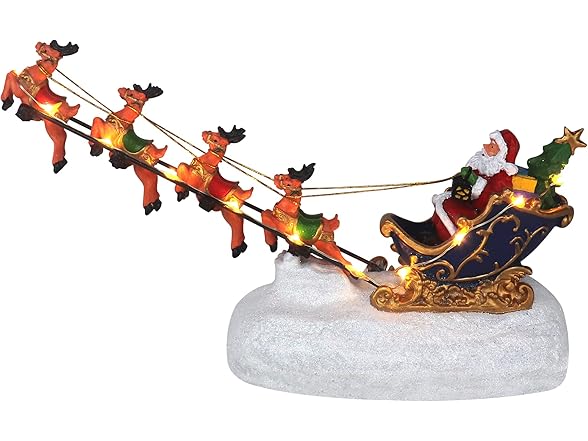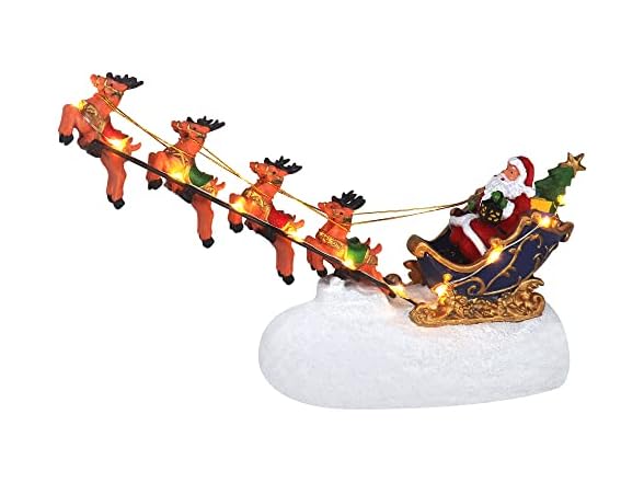 - REALISTIC – This Pre Lit Christmas Village Santa in Reindeer Sleigh, a perfect addition to any Christmas Houses Village, is so realistic that you'll feel like you're in a winter wonderland! Add this Light Up Snow Village to your indoor Christmas Decorations and create a magical holiday display.