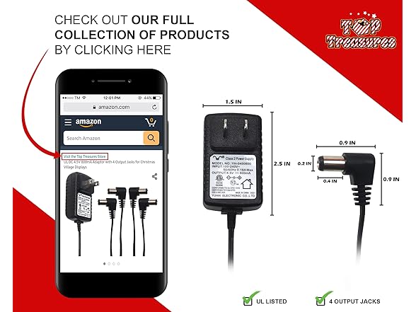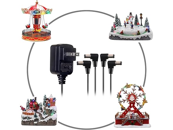 Top Treasures UL DC 4.5V 800mA Adapter with 4 Output Jacks for Christmas Village Displays - Not Compatible with Lemax Village