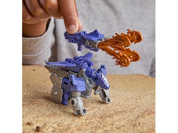 - ARMOR UP WITH CONVERTING BLASTER ACCESSORY: Flame blaster accessory has 2 awesome modes and can be attached to the figure in robot or dragon mode