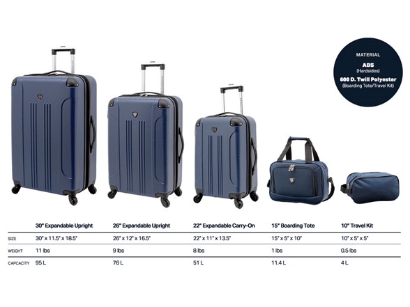 - Coordinated Travel Accessories with Smart Features: Included in the 3 Piece Set and 5 Piece Set options are a 15” boarding tote with add-a-bag sleeve for secure stacking and a compact 10” travel kit to keep essentials organized and accessible