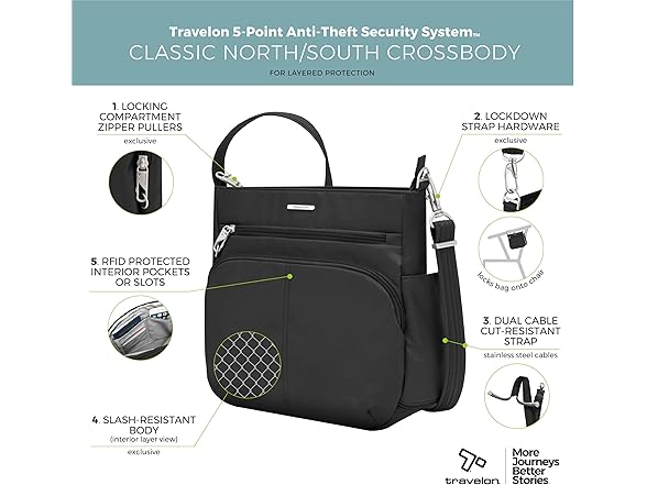 Travelon Anti-Theft Classic North/South Crossbody Bag