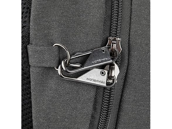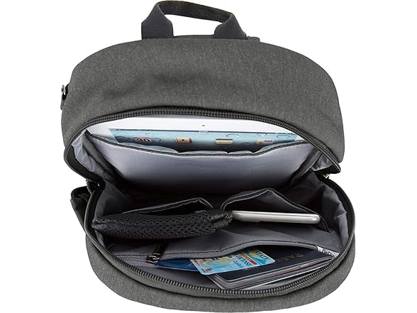 - COMFORTABLE, SLEEK, EASY-TO-CARRY and perfect for hiking or day-trips. It features a padded pocket for an iPad or tablet, 2 drop pockets, a RFID zippered wall pocket and a tethered key clip. The front of the backpack has two pockets; one has a locking zipper for security and the second is a low profile pocket with a trendy plastic zipper. The side expansion pocket is ideal for a water bottle or umbrella.