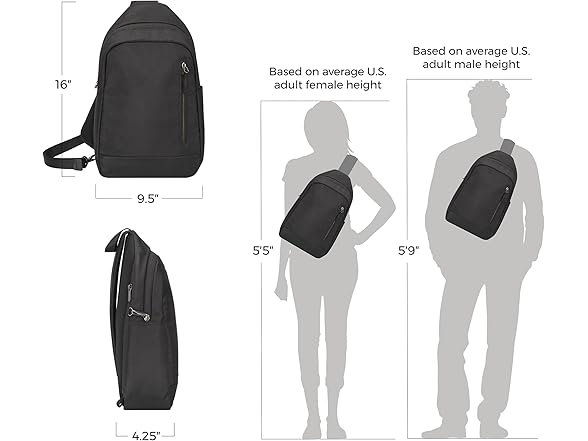 - Product Size: 9.5”W x 16”H x 4.25”D, Strap Drop Length: 21"-42", Weight 1.10 lbs