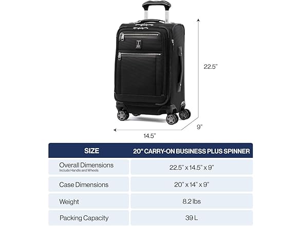 - U.S. AIRLINE FRIENDLY: Overall dimensions (includes wheels & carry handles): 22.5"x 14.50"x 9". Case dimensions: 20"x14"x9".Weight: 8.2 lbs. Sizer bin tested, fits most major US airlines overhead space. Fully expanded may not meet airline restrictions