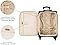 - Carry-on luggage has 4-wheel spinners that rotate 360° to provide superior maneuverability. Full-length interior lid pocket, side accessory pocket, and adjustable hold down straps offer intelligent packing flexibility
