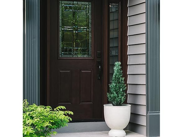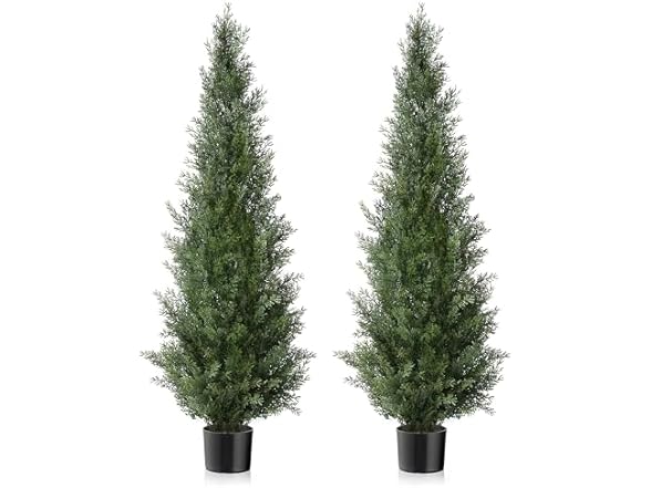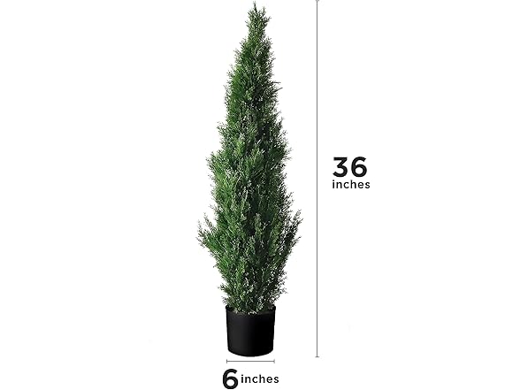 Set of 2 Pre-Potted 3 Feet Faux Cedar Tree, Lifelike UV Protected Front Door Decor, Porch, Garden, Entryway Topiary, Indoor/Outdoor Use - Ready to Display