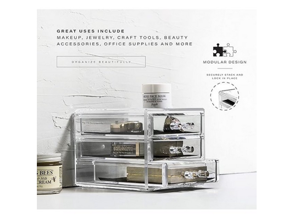- Multi-purpose storage: These acrylic makeup organizers are a fantastic storage solution for all of your cosmetics and makeup organization. Whether you use them to store lipstick, foundation, bronzers, blushes, eye shadows, primers, powder, pencils, brushes, or creams, this drawer will give you an organized and convenient place for everything. Best of all, it can also serve as a holder to store jewelry, perfume, personal vanity accessories, and other small items.