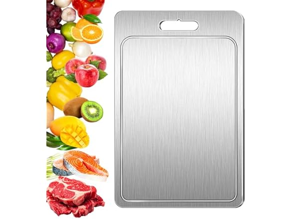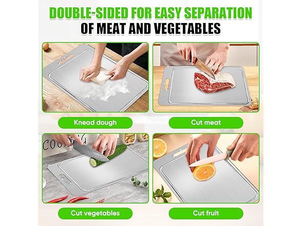 Titanium Cutting Board – Pure Metal Double Sided Chopping Board with Juice Groove, Durable Kitchen Cutting Surface for Meat, Vegetables & Fruits (Medium, 1.5mm Thick)