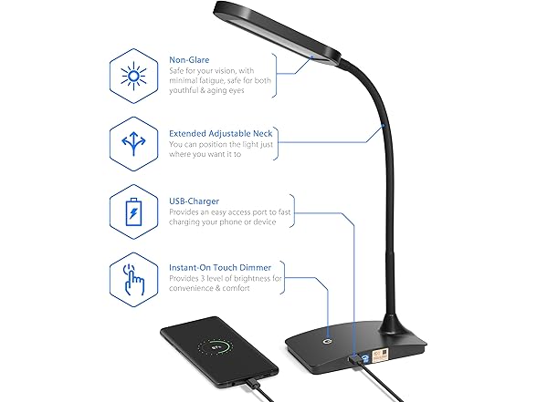 - ✅[SIMPLE, ULTRA-EFFICIENT MODERN LED DESK LAMP] Created as a reading lamp for desk, this small lamp delivers a superior 500 lumen onto a space. The unobtrusive touch dimmer provides 3 level of brightness satisfies both task and ambiance lighting needs alike.