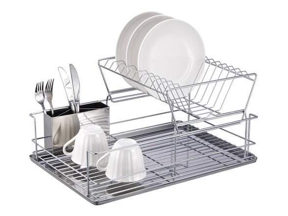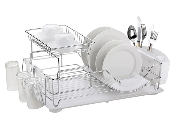 Home Basics Two-Tier Chrome Dish Rack and Drainer - 3 Colors