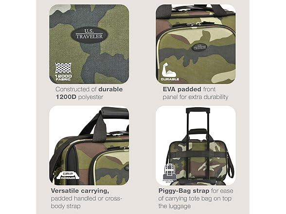 U.S. Traveler Rio 14" Travel Tote Bag, Lightweight 1200D Carry-On Bag for Women & Men, Camo