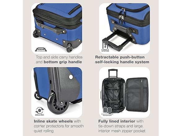 - Glide effortlessly through the airport with our internal deluxe retractable push-button, self-locking handle system that provides easy maneuvering.