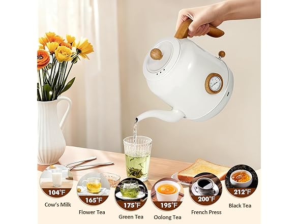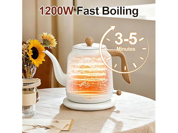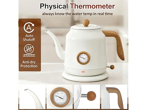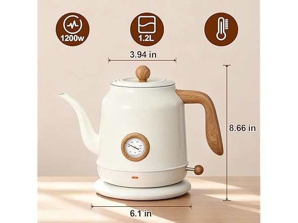 1.2L Electric Gooseneck Kettle with thermometer, Tea Kettle for Boiling Water, Gooseneck Electric Kettle for Coffee & Tea