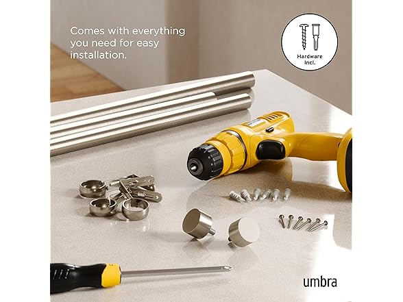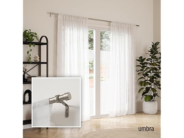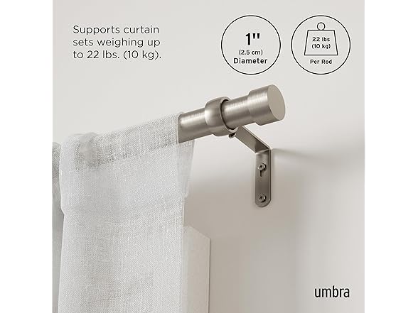 With a modern yet understated design, the Cappa curtain rod is the perfect way to complement your curtains or drapes without drawing attention away from them. The clean, minimalistic styling and attractive matte finish is a decorator's dream because it works with a wide variety of decorative styles and color palettes. Best of all, it does so without breaking the bank. When it comes to curtain rods, quality construction counts and Cappa doesn't disappoint. Unlike cheaply made rods that tend to bend or warp over time, each Cappa curtain rod from Umbra is made of high-quality metal and individually checked for quality assurance. Sturdy and designed to support a variety of window fashions including light to medium weight curtains with a max weight of 22lbs. Finding and mounting the right sized curtain rod can sometimes be a challenge but that isn't the case with Cappa. Plus, everything you need to get it set up fast comes in the box including 2 metal finials, 3 adjustable wall-mounted curtain rod brackets (also finished in brass), screws, drywall anchors and easy-to-follow installation instructions. Adding attractive window coverings to your bedroom, family room, living room, dining room, or kitchen is the quick and cost-effective way to instantly upgrade your home decor.