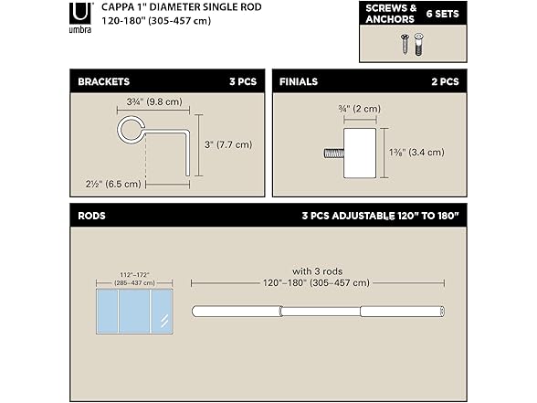 - EASY TO SET UP: Comes with everything you need to get set up quickly: telescoping rod, finials, wall-mount brackets, screws, drywall anchors and easy to follow instructions