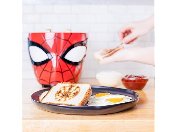 - BRING SPIDEY INTO YOUR KITCHEN: Spiderman’s iconic mask is a detailed working toaster.