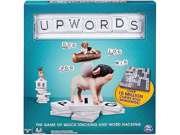Spin Master Games, Upwords, Classic Word Game with Stackable Letter Tiles, Family Board Game, Crossword Activity, 1-4 Players, for Ages 8 & Up