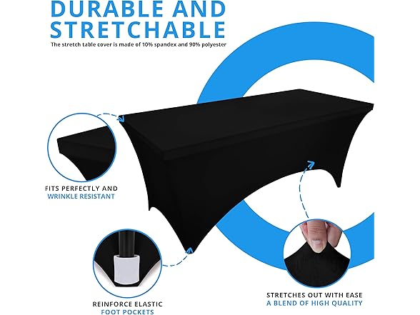 - DURABLE AND STRETCHABLE: The stretch table cover is made of 10% spandex, 90% polyester, wrinkle resistant stretch spandex fabric 190 GSM, pack of 2, which makes the tablecloth stretchy and more durable, no need to iron and can be laundered countless times