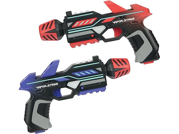 Unleash your inner hero with Vapor Strike, the blasters that bring epic, video game battles to the real world. Blast your friends with mind-blowing, light-up vapor effects as you clash in the ultimate battle.The Vapor Strike Vapor Blaster 2 Player Pack features two vapor blasters for epic laser tag style battles. Just add water to create epic, light-up vapor effects so you can see the power of your blast! Responsive sounds and vibration effects enhance the play to immerse you in the combat. Play in a team battle or a free for all. Choose one of 4 colors (white for free for all; red, green or blue to play on that team). Your Vapor Blaster tracks your hits and health points! Vibration and sound effects tell you when you’re hit. Lights on your blaster count down your health until it's time to respawn. Defeat your opponents by blasting a direct hit at their blaster, knocking out one of their 6 health points. Each 2 Player Pack includes 2 Vapor Blasters, 1 water dropper and an instruction manual. All Vapor Strike blasters work together. Batteries not included. Perfect for ages 6+.