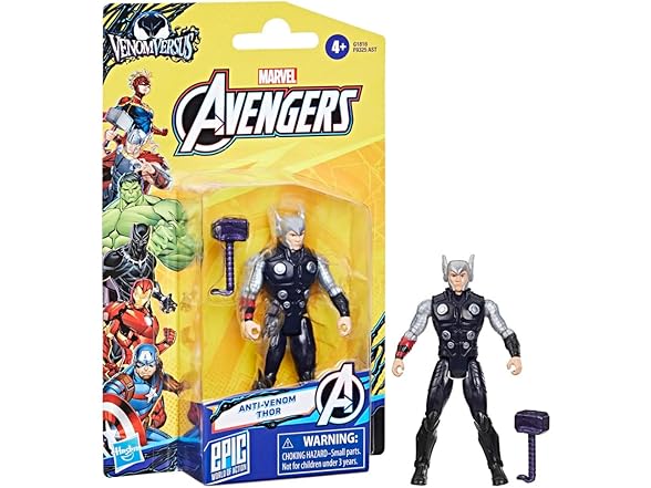 - POSEABLE 4-INCH (10 CM) ACTION FIGURE: This collectible Marvel Anti-Venom Thor figure features 9 points of articulation, so kids can easily pose their toy for playtime or display