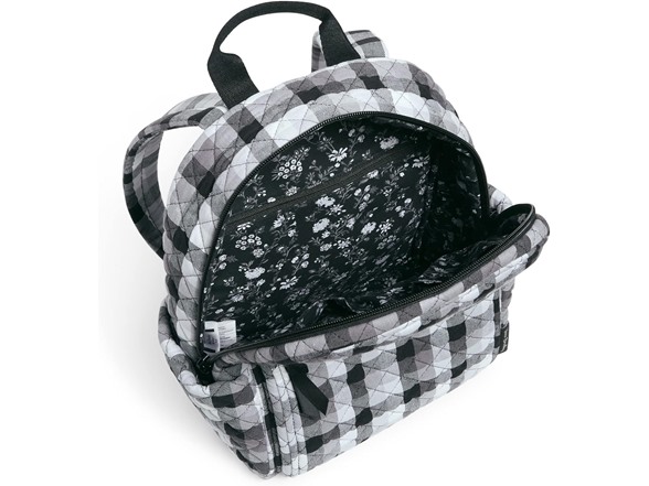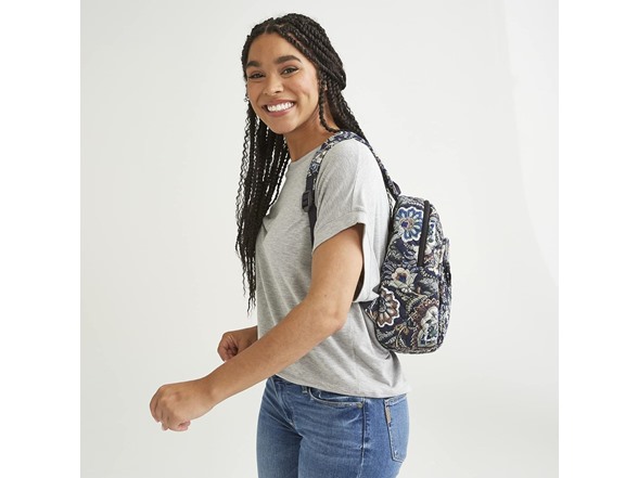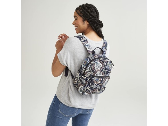 Vera Bradley is your back to campus destination! Our back packs are perfect for class, campus, work, and travel, including backpacks for men, backpacks for women, and backpacks for college. Our bookbags have plenty of organization, whether you are shopping for a large backpack or a mini backpack.Consciously crafted with recycled cotton. Exterior features a front zip pocket (with one slip and two pen pockets) and three slip pockets. Interior features one zip and two slip pockets. Zip closures. Capacity 9 L.Machine wash cold, gentle cycle, only non-chlorine bleach when needed; line dry