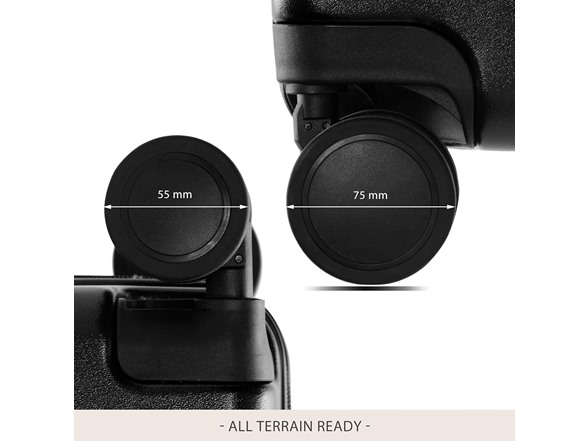 INNOVATION SPINNER: The ONLY hardside double spinner luggage with X-LARGER rear wheels, allow 360 degree upright rolling or effortless dragging. Excellent performance even on uneven roads
