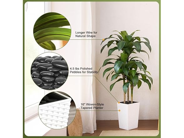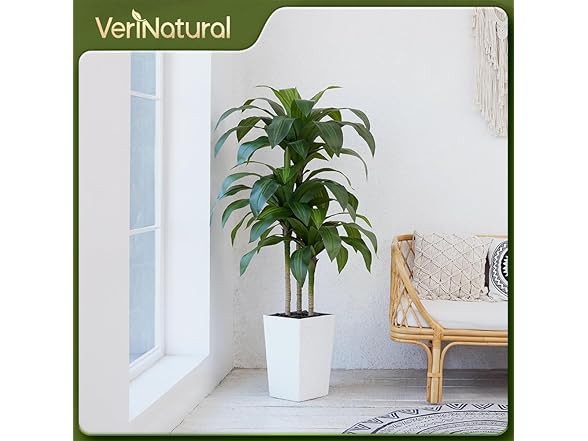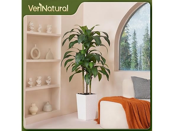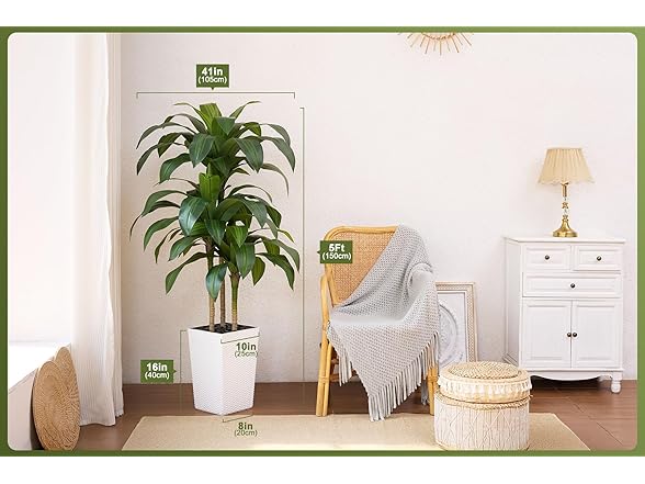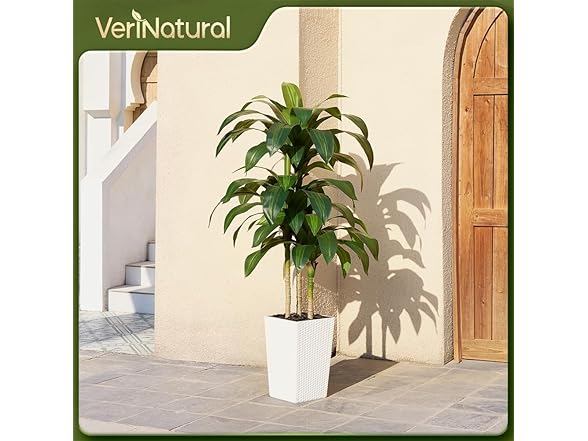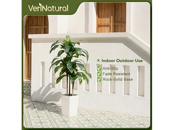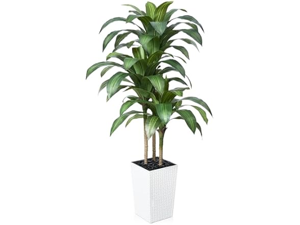 5FT Artificial Dracaena Tree - UV Resistant Faux Tropical Plant, Potted Fake Tree with Taper Planter & Pebbles - Indoor Outdoor Greenery for Home, Porch, Living Room, Bedroom Decor, VN127