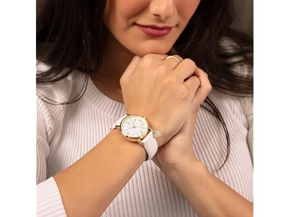 - The vegan leather bracelet, measuring 18mm in width and 8.5 inches in length, not only contributes to the watch's chic appearance but also offers a comfortable and adjustable fit.