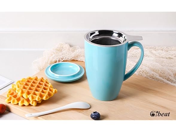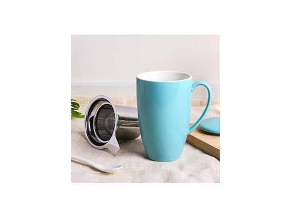 Tea Cup with Removable Infuser and Lid, 16 Oz Microwave Safe Ceramic Tea Cup for Loose Leaf, Coffee, Cocoa and Milk, Gift for Tea Lovers, Mint Green
