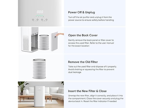 - Covers Large Areas Up to 1800 sq ft: With a CADR of 242 CFM, this unit refreshes indoor air quickly and evenly—suitable for large living rooms, open-plan homes, offices, basements, or dorm room settings