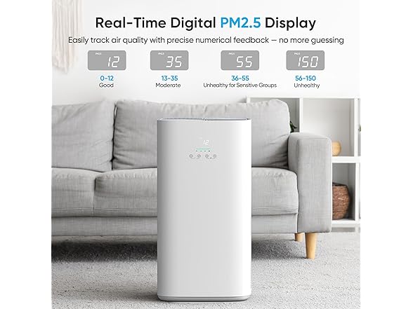 - Whisper-Quiet Sleep Mode: Running at just 23dB with dimmed lights, this model is ideal among air purifiers for bedroom use—promoting restful sleep while maintaining fresh indoor air
