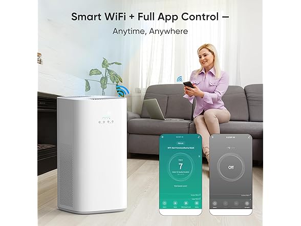 - Smart WiFi & App Connectivity: Control your air purifier remotely via a user-friendly app—adjust fan speed, set timers, activate night mode, and check air freshness anytime, from anywhere