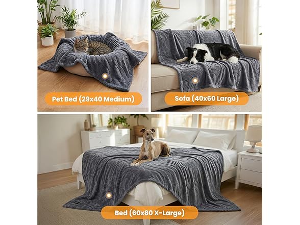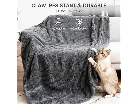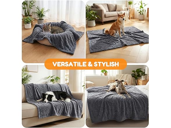 BoxZone Waterproof Dog Blanket for Couch – Double Sided Washable Cat Puppy Blanket, Durable Furniture Protector for Dogs and Cats, Grey