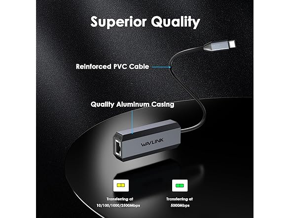 USB C to Ethernet Adapter 5G, WAVLINK 5G Ethernet Adapter for Laptop, Compatible with Type C Device to Network for MacBook, XPS, iPad Pro-USB3.1 Gen 2 Required