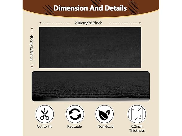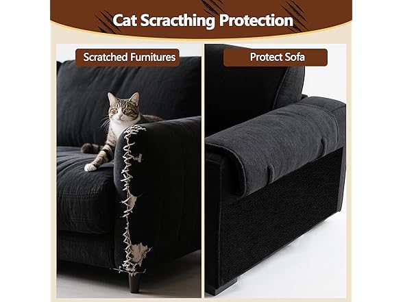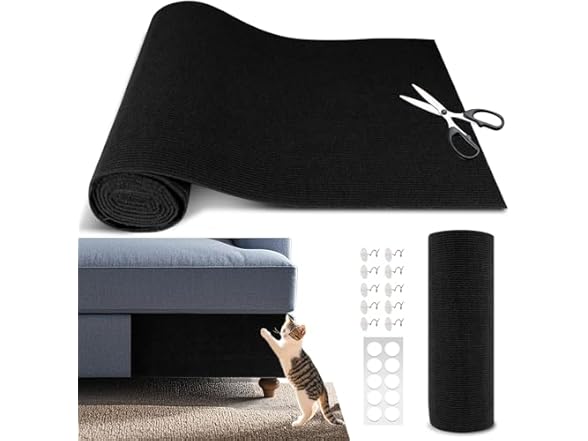 Cat Scratch Furniture Protector, 78.7"x15.8" Self Adhesive Cat Scratch Mat Pad,Cut to Fit DIY Replacement Carpet for Tree,Wall,Bed,Door, Couch Protector (Black)