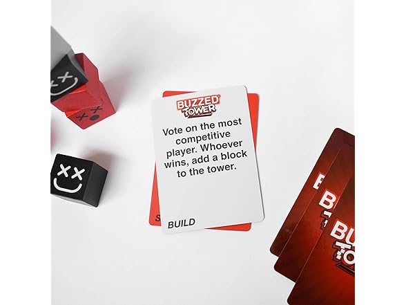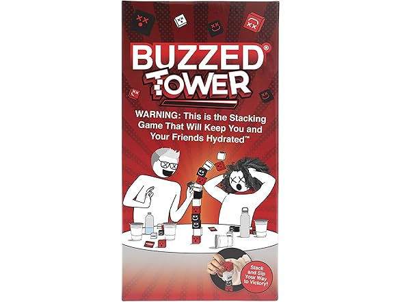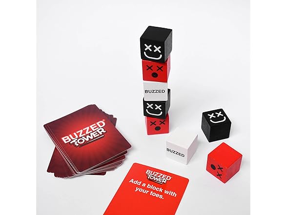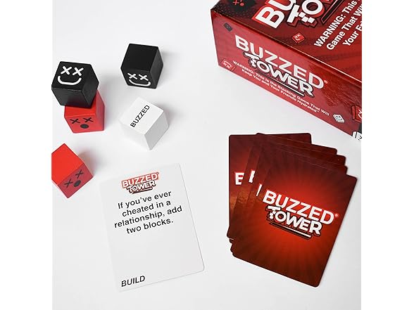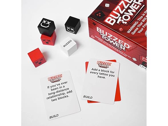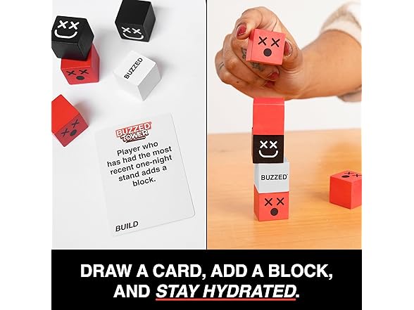 WHAT DO YOU MEME? Buzzed Tower: The Stack-and-Sip Drinking Card Game for Adults – Includes 30 Blocks, 80 Cards, and Big Laughs for Parties, Game Night, and Epic Bachelor Party Celebrations