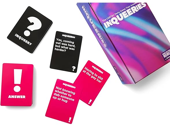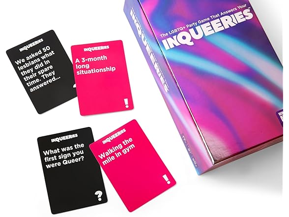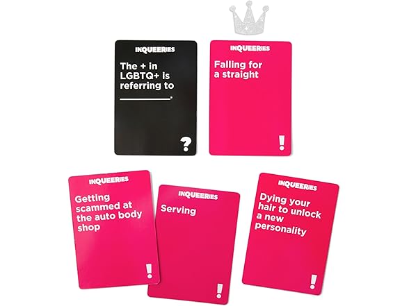 InQueeries by Relatable, Adult Games for Game Night, LGBTQ Games and Card Games for Pride Social Gatherings, Appropriate for Ages 17+, Includes 450 Cards, Holographic Crown, and Instructions