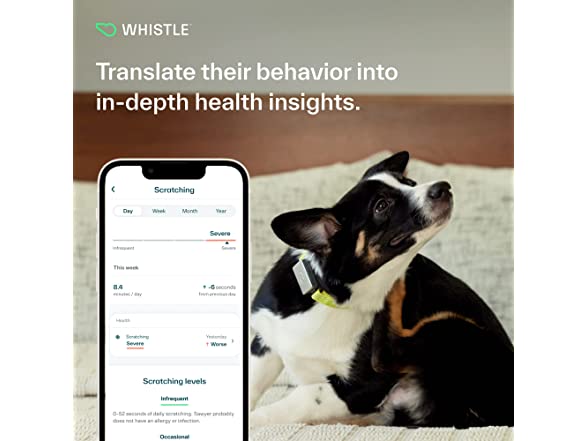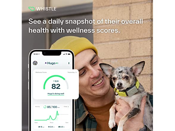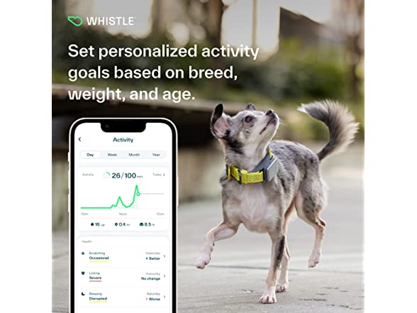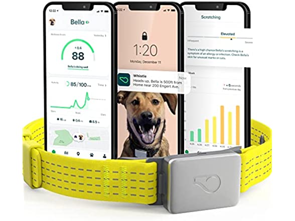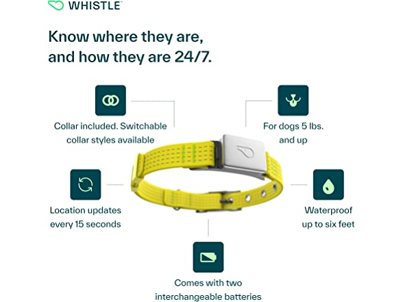 Whistle Switch GPS + Health + Fitness Smart Dog Collar, 24/7 Dog GPS Tracker Plus Dog Health & Fitness Monitor, Sleek Design, Waterproof, 2 Rechargeable Batteries, for Dogs 5lbs and up (Yellow) XS/S