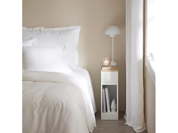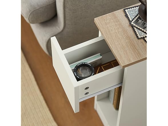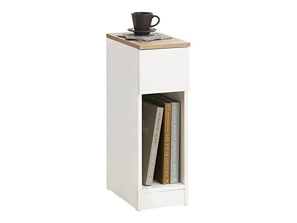 SoBuy Nightstand Narrow Night Stand Modern Design Bedside Furniture Slim End Table Storage Cabinet with Sliding Drawer and Open Compartment, White & Natural FBT111-WN