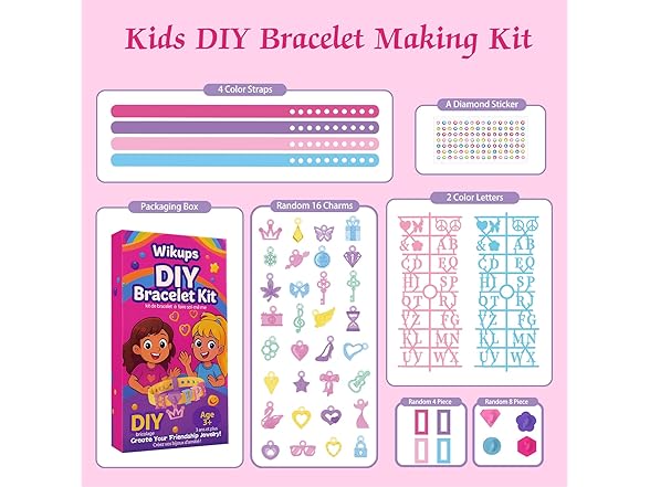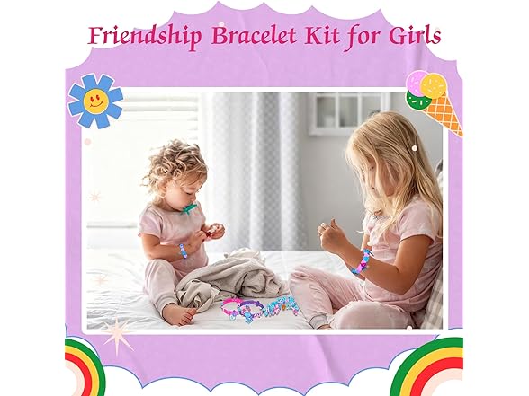 - Friendship Bracelet Making Kit for Girls - This all-in-one DIY bracelet kit includes colorful straps, letters, charms & sparkly stickers. Kids can design and personalize their own unique bracelets, sparking imagination and encouraging endless creative expression.