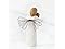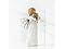 - 5” hand-painted resin figure of a standing angel in cream dress and wire wings holding brown dog in arms.