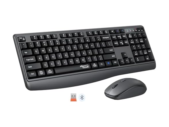 Wireless Keyboard and Mouse Combo, 2.4G/Bluetooth Silent Full-Size Cordless Keyboard Mouse Combo, 3800 DPI Optical Mouse, Wrist Rest, Portable Keyboard Mouse Set for Mac, Windows, Laptop