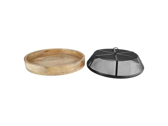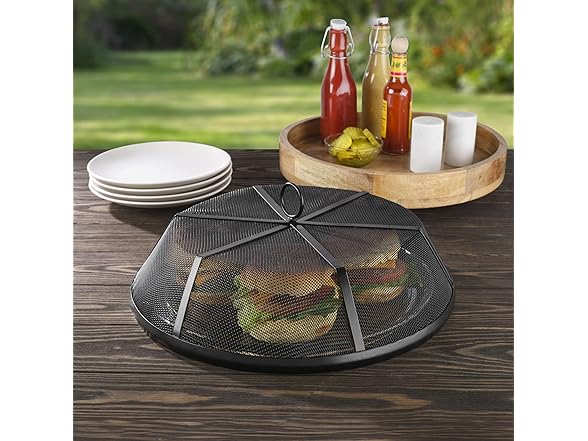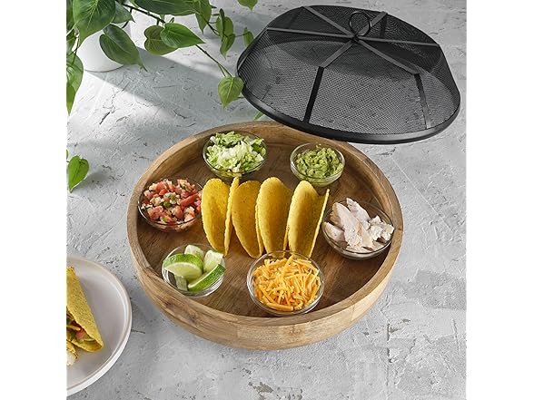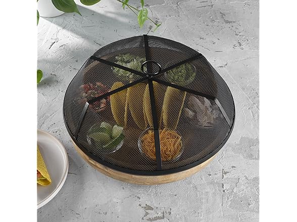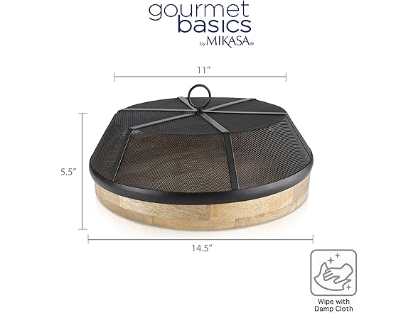 Gourmet Basics by Mikasa Mango Wood Lazy Susan with Iron Mesh Food Dome Cover, 14.5 Inch